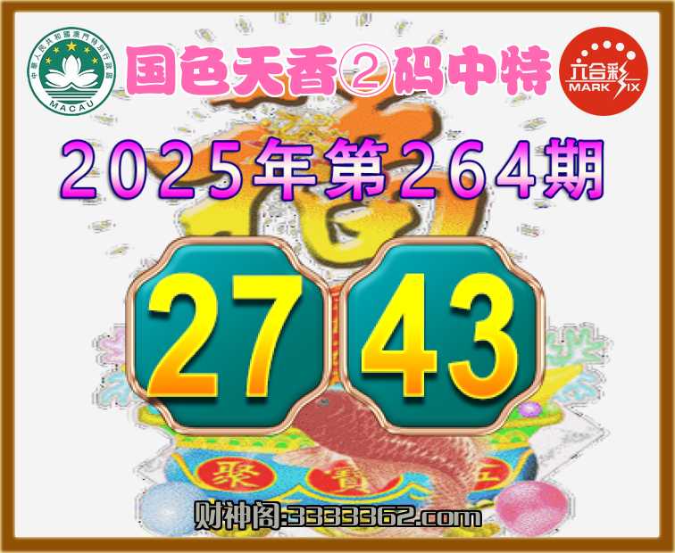264期:【国色天香】 ☝️②码中特☝️【27.43】开:43