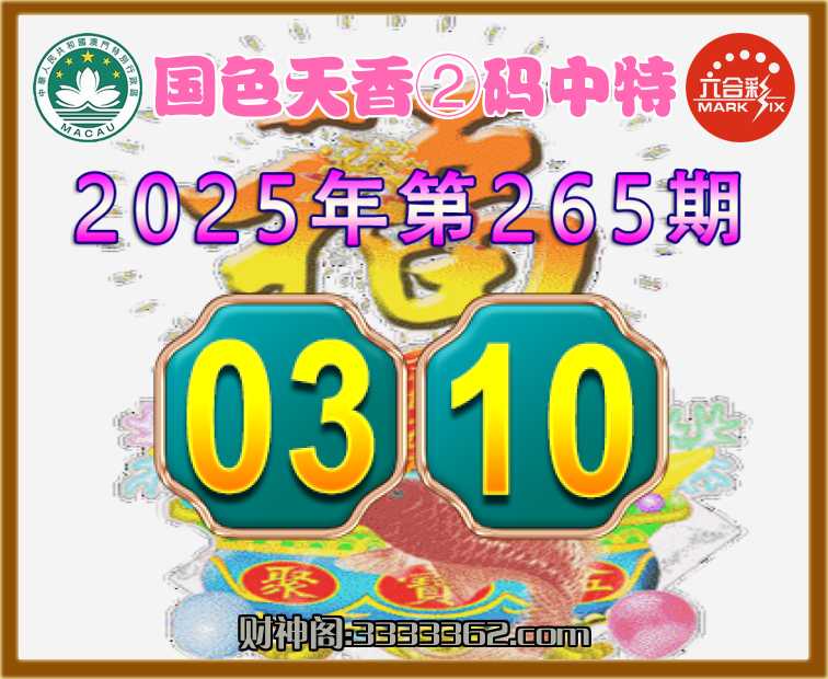 265期:【国色天香】 ☝️②码中特☝️【03.10】开:10