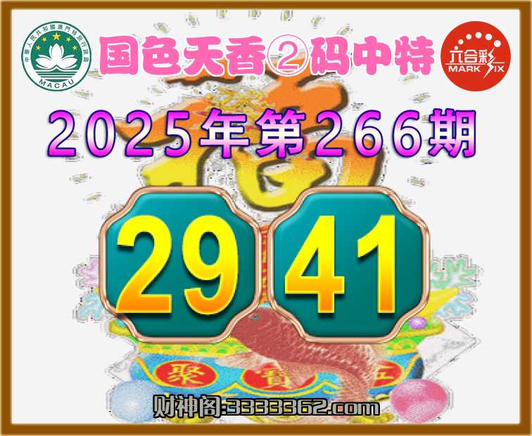 266期:【国色天香】 ☝️②码中特☝️【29.41】开:41