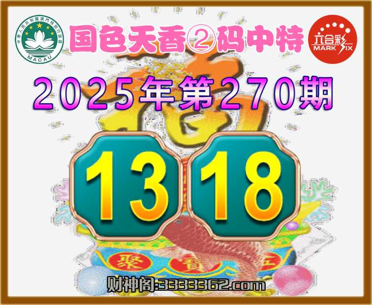 270期:【国色天香】 ☝️②码中特☝️【13.18】开:00准