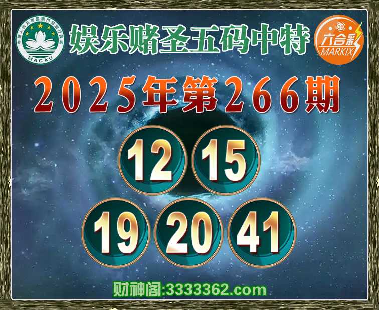 266期:《娱乐赌圣》 🥼五码中特🥼【12.15.19.20.41】开:41