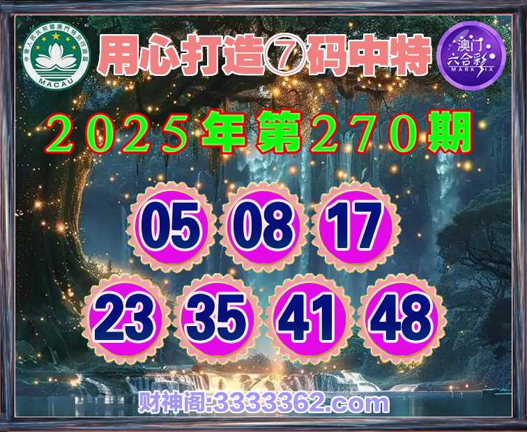270期:【用心打造】 🏄‍♀️⑦码中特🏄‍♀️【05.08.17.23.35.41.48】开:35