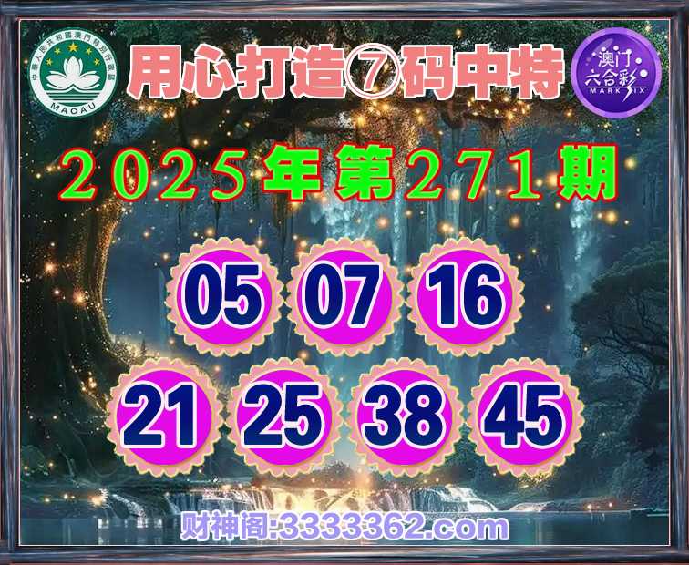 271期:【用心打造】 🏄‍♀️⑦码中特🏄‍♀️【05.07.16.21.25.38.45】开:00准