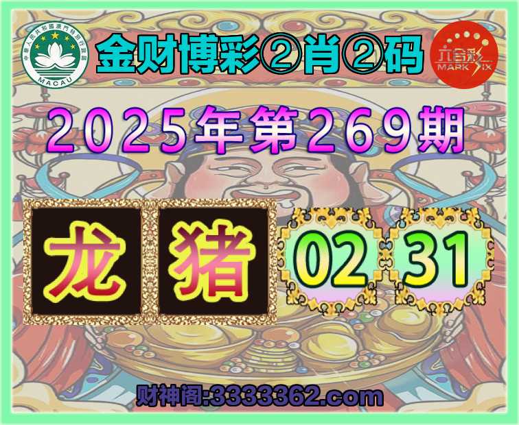 269期:《金财博彩》 🍃②肖②码🍃【龙】【02.31】开:猪31