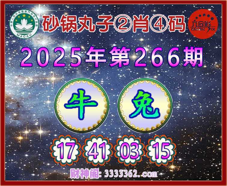 266期:『砂锅丸子』 🧸②肖④码🧸【兔】【17.41.03.15】开:牛41