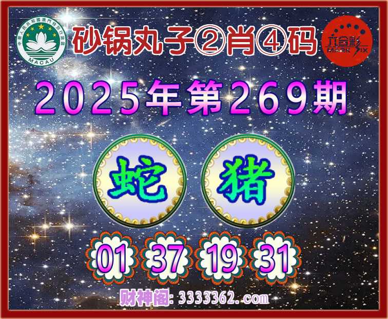 269期:『砂锅丸子』 🧸②肖④码🧸【蛇】【01.37.19.31】开:猪31