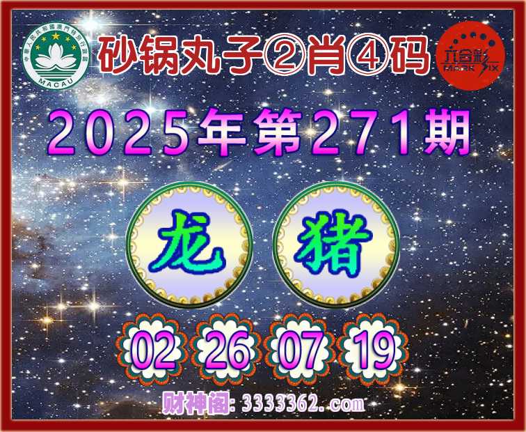 271期:『砂锅丸子』 🧸②肖④码🧸【龙猪】【02.26.07.19】开:00准