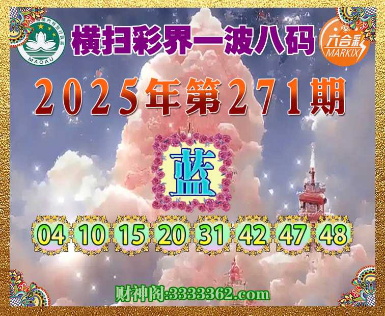 271期: 🕯『横扫彩界』 🕯一波八码🕯【蓝波】开:00准