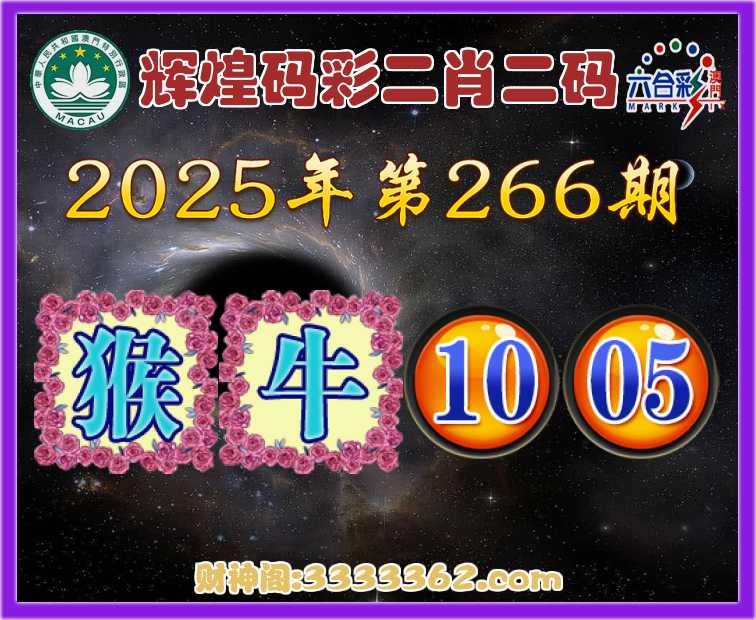 266期:《辉煌码彩》 🏇二肖二码🏇【猴】【10.05】开:牛41