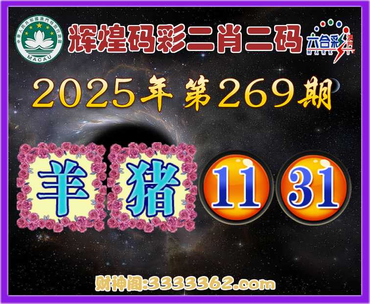 269期:《辉煌码彩》 🏇二肖二码🏇【羊】【11.31】开:猪31