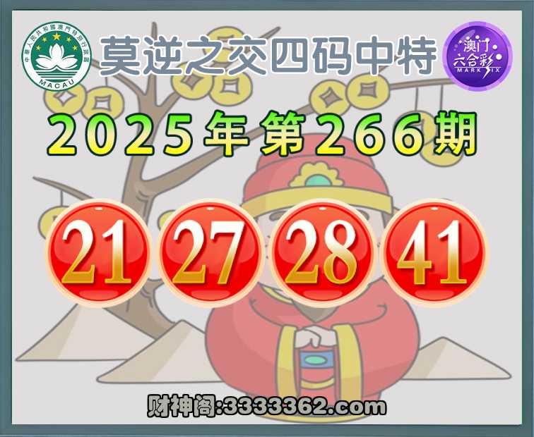 266期:〖莫逆之交〗 🚵‍♀️四码中特🚵‍♀️【21.27.28.41】开:41