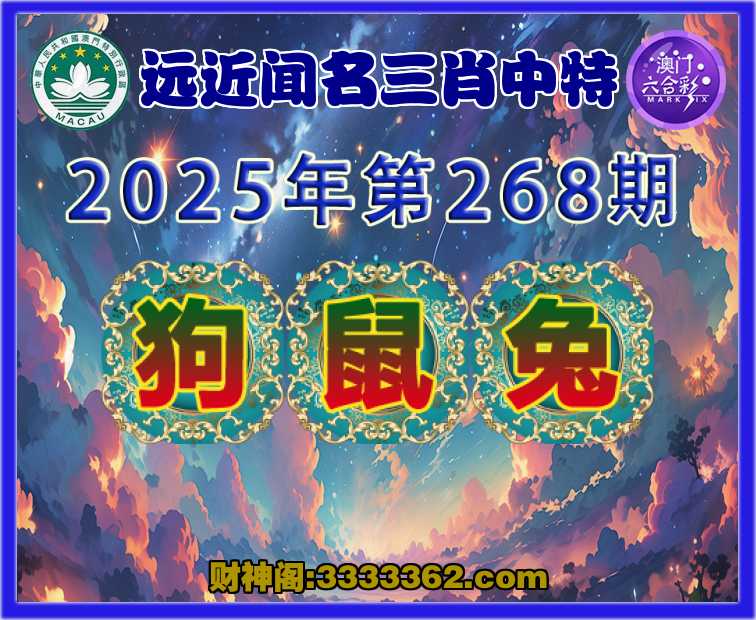 268期:『远近闻名』 🏵️三肖中特🏵️【狗.鼠.兔】开:00准