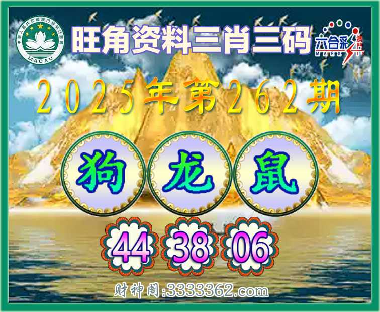 262期: 🥩『旺角资料』 🥩三肖三码🥩【龙鼠】【44.38.06】开:狗44
