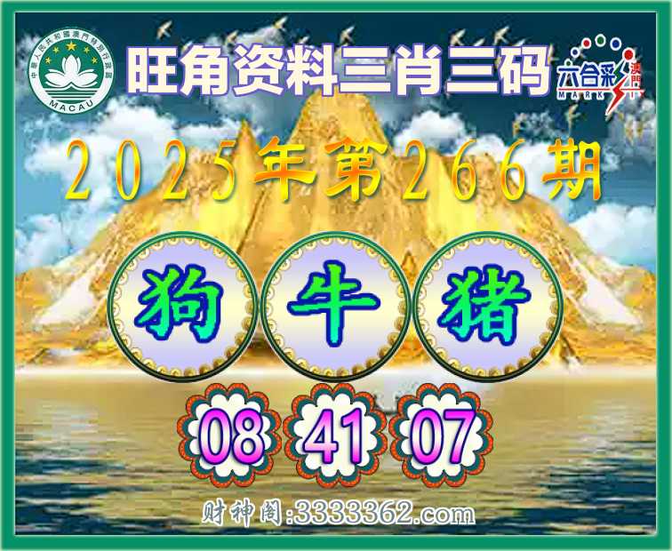266期: 🥩『旺角资料』 🥩三肖三码🥩【狗猪】【08.41.07】开:牛41
