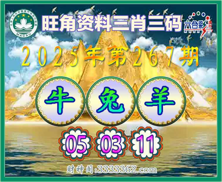 267期: 🥩『旺角资料』 🥩三肖三码🥩【兔羊】【05.03.11】开:牛29