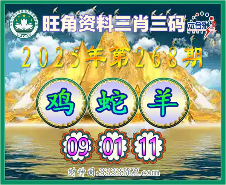 268期: 🥩『旺角资料』 🥩三肖三码🥩【鸡蛇羊】【09.01.11】开:00准