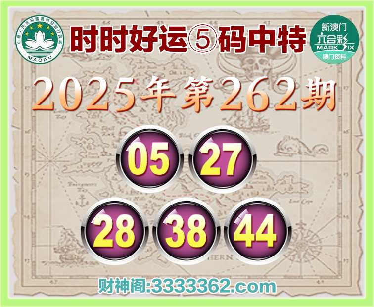 262期:『时时好运』 ✌️⑤码中特✌️【05.27.28.38.44】开:44