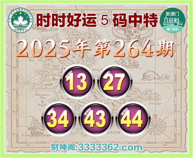 264期:『时时好运』 ✌️⑤码中特✌️【13.27.34.43.44】开:43