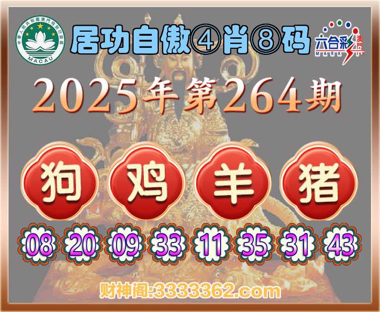 264期:【居功自傲】 👑④肖⑧码👑【狗鸡羊】开:猪43