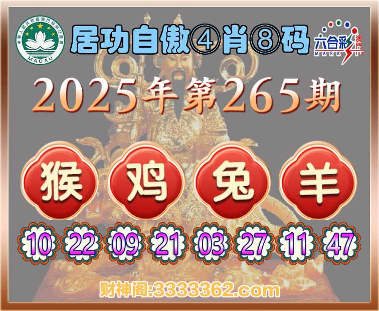 265期:【居功自傲】 👑④肖⑧码👑【鸡兔羊】开:猴10
