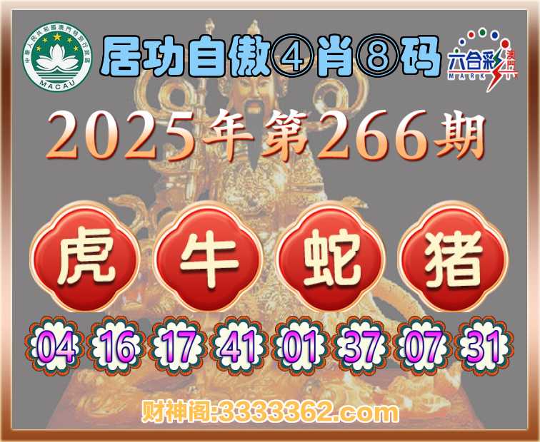 266期:【居功自傲】 👑④肖⑧码👑【虎蛇猪】开:牛41