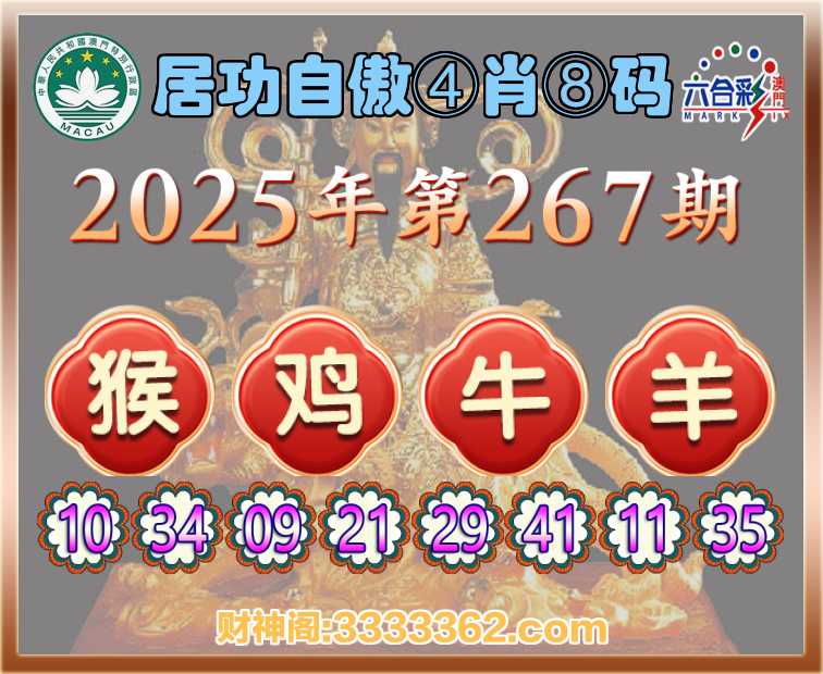 267期:【居功自傲】 👑④肖⑧码👑【猴鸡羊】开:牛29