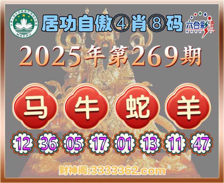 269期:【居功自傲】 👑④肖⑧码👑【马牛蛇羊】开:00准
