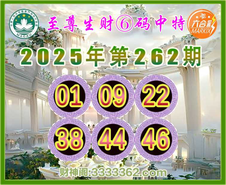 262期:〖至尊生财〗 💄⑥码中特💄【01.09.22.38.44.46】开:44