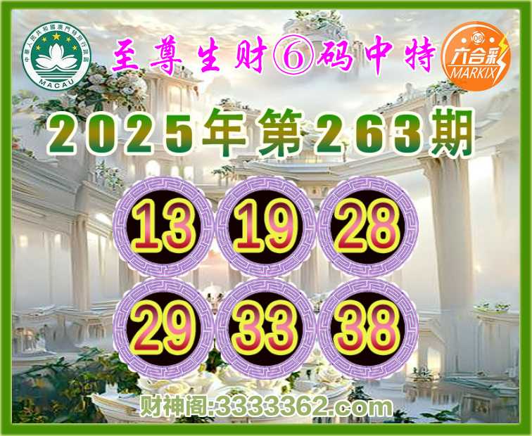 263期:〖至尊生财〗 💄⑥码中特💄【13.19.28.29.33.38】开:38