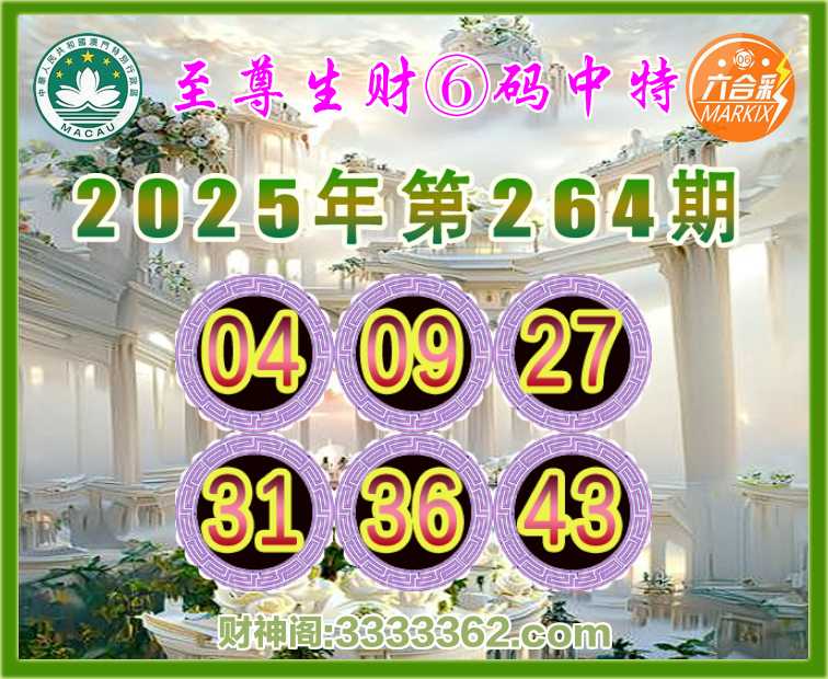 264期:〖至尊生财〗 💄⑥码中特💄【04.09.27.31.36.43】开:43