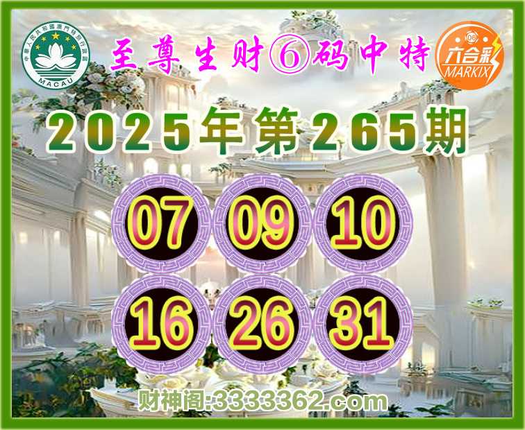 265期:〖至尊生财〗 💄⑥码中特💄【07.09.10.16.26.31】开:10