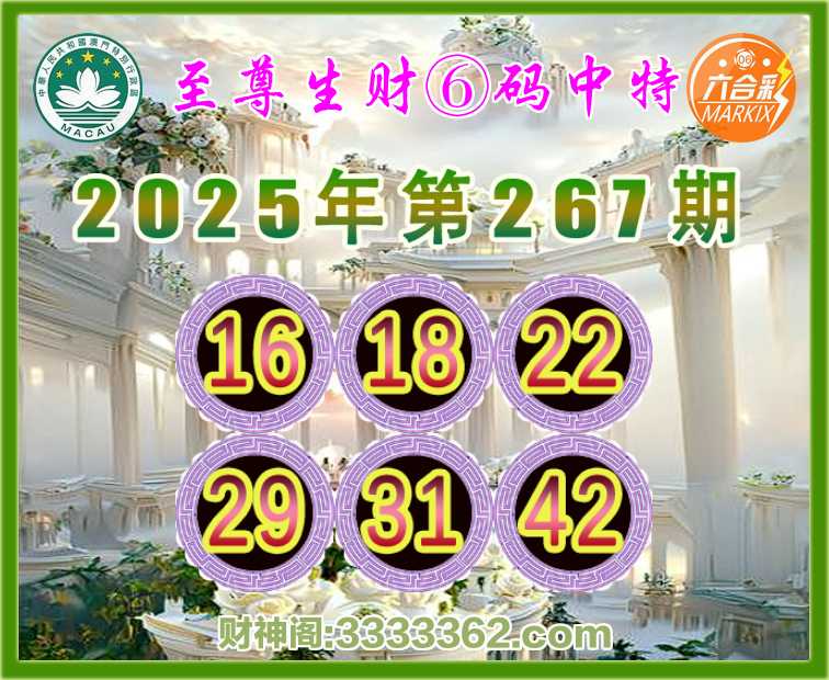 267期:〖至尊生财〗 💄⑥码中特💄【16.18.22.29.31.42】开:29