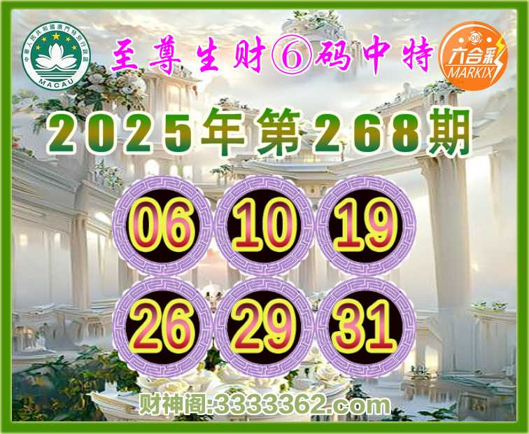 268期:〖至尊生财〗 💄⑥码中特💄【06.10.19.26.29.31】开:10