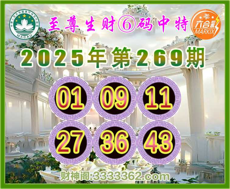 269期:〖至尊生财〗 💄⑥码中特💄【01.09.11.27.36.43】开:00准