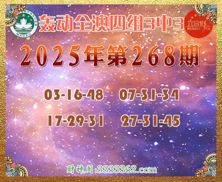 269期:轰动全澳【四组3中3】〓 赚钱秘籍