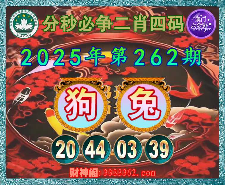 262期:『分秒必争』 🎉二肖四码🎉【兔】【20.44.03.39】开:狗44