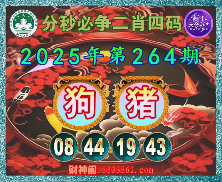 264期:『分秒必争』 🎉二肖四码🎉【狗】【08.44.19.43】开:猪43