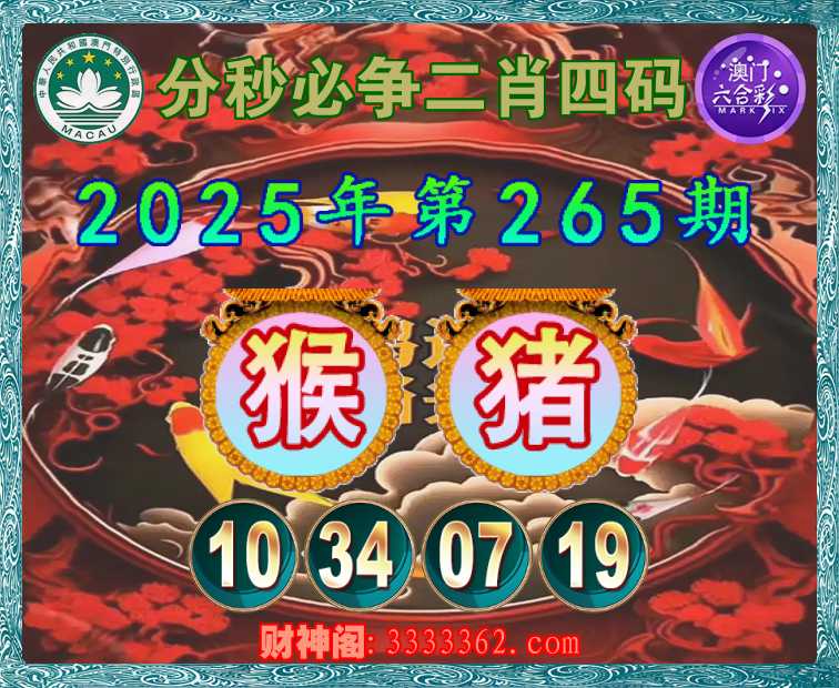 265期:『分秒必争』 🎉二肖四码🎉【猪】【10.34.07.19】开:猴10
