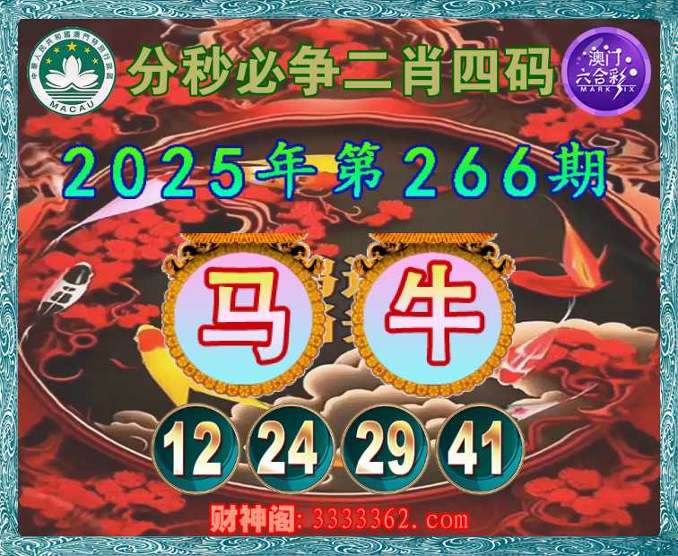 266期:『分秒必争』 🎉二肖四码🎉【马】【12.24.29.41】开:牛41