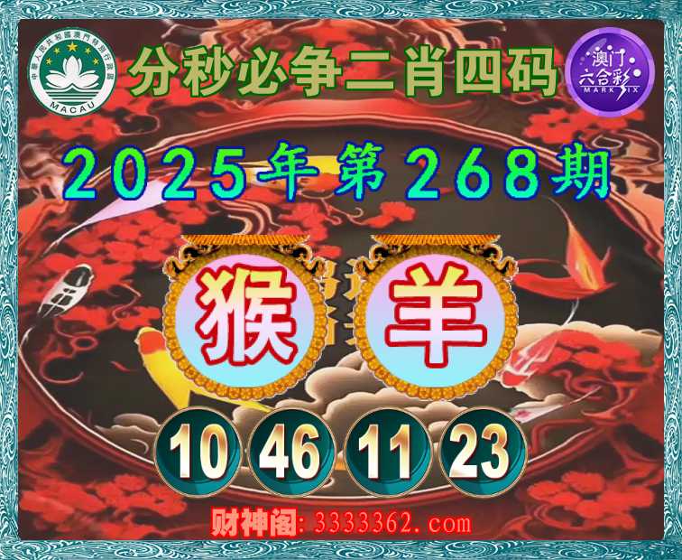268期:『分秒必争』 🎉二肖四码🎉【羊】【10.46.11.23】开:猴10