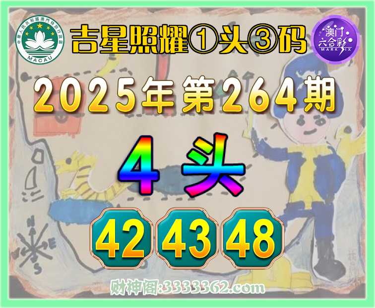 264期:〖吉星照耀〗 🍒①头③码🍒【4头主:42.43.48】开:猪43