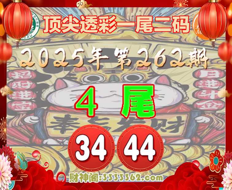 262期:《顶尖透彩》 🥓一尾二码🥓【4尾主:34.44】开:44