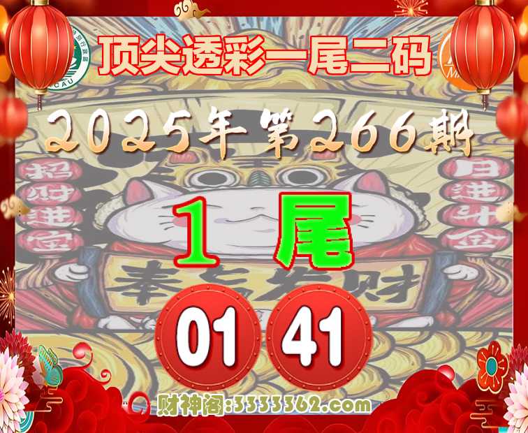 266期:《顶尖透彩》 🥓一尾二码🥓【1尾主:01.41】开:41
