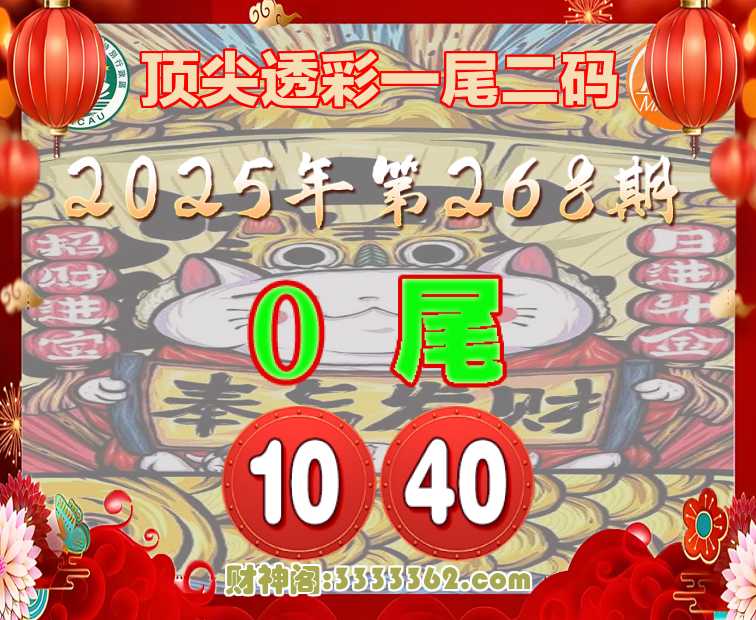 268期:《顶尖透彩》 🥓一尾二码🥓【0尾主:10.40】开:10