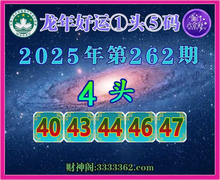 262期:『龙年好运』 😜①头⑤码😜【4头主:40.43.44.46.47】开:44