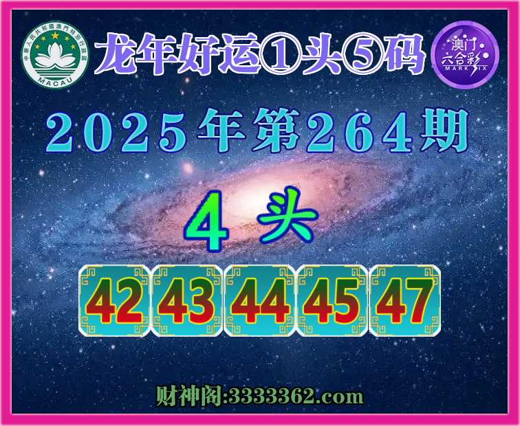 264期:『龙年好运』 😜①头⑤码😜【4头主:42.43.44.45.47】开:43