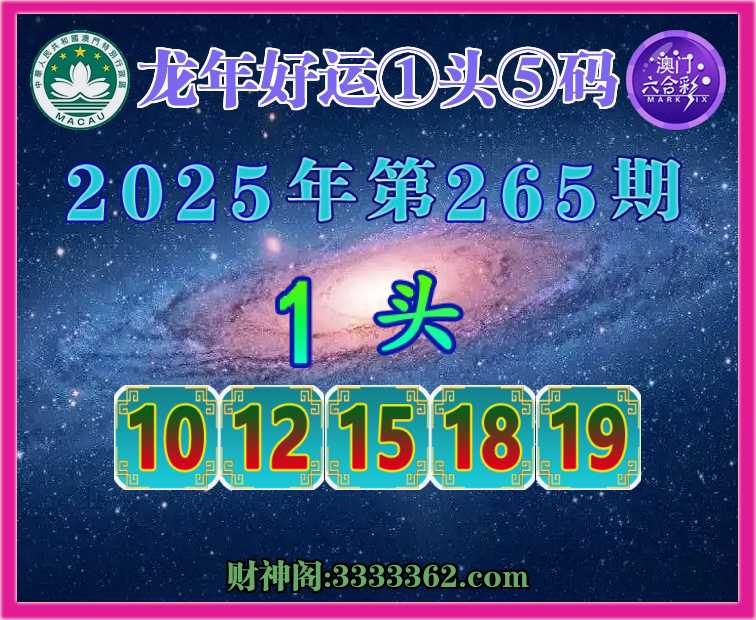 265期:『龙年好运』 😜①头⑤码😜【1头主:10.12.15.18.19】开:10