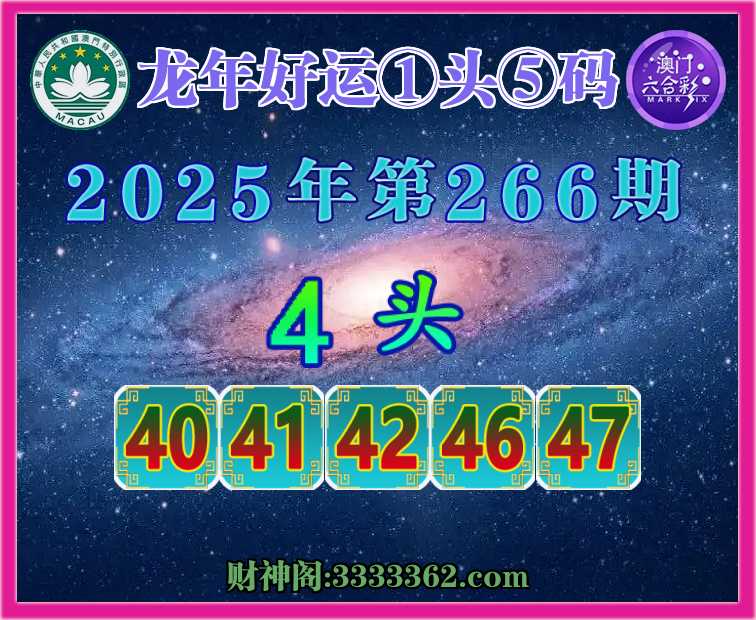 266期:『龙年好运』 😜①头⑤码😜【4头主:40.41.42.46.47】开:41