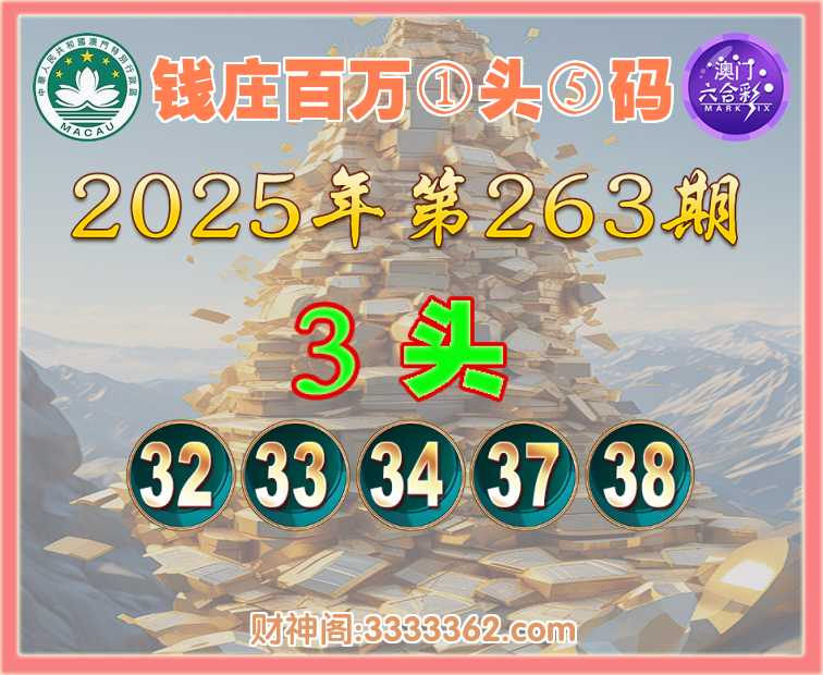 263期:〖钱庄百万〗 🎆①头⑤码🎆【3头主:32.33.34.37.38】开:38