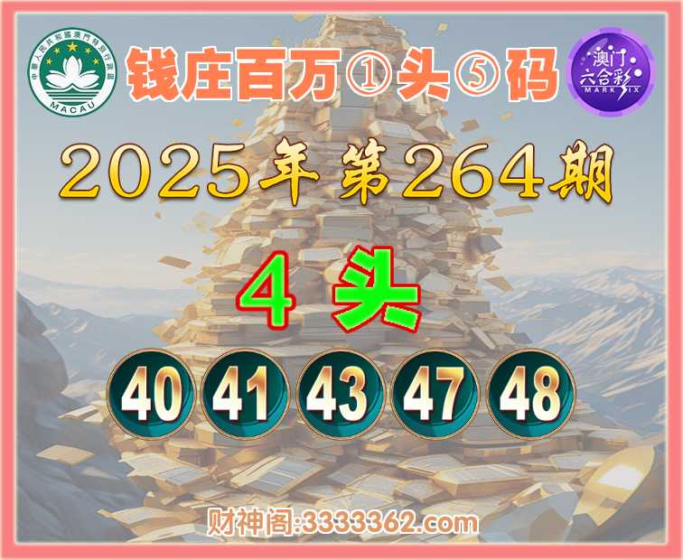 264期:〖钱庄百万〗 🎆①头⑤码🎆【4头主:40.41.43.47.48】开:43